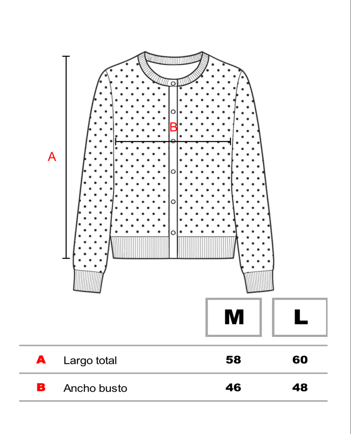 Nuestra chaqueta de punto con mini lunares es ese básico elegante que levanta cualquier look con un toque de tendencia. Confeccionada en tejido suave, tiene cuello redondo, botones frontales y terminaciones acanaladas que aportan un toque clásico y delicado. Perfecta para usar sobre tops o vestidos, en días frescos o de entretiempo.