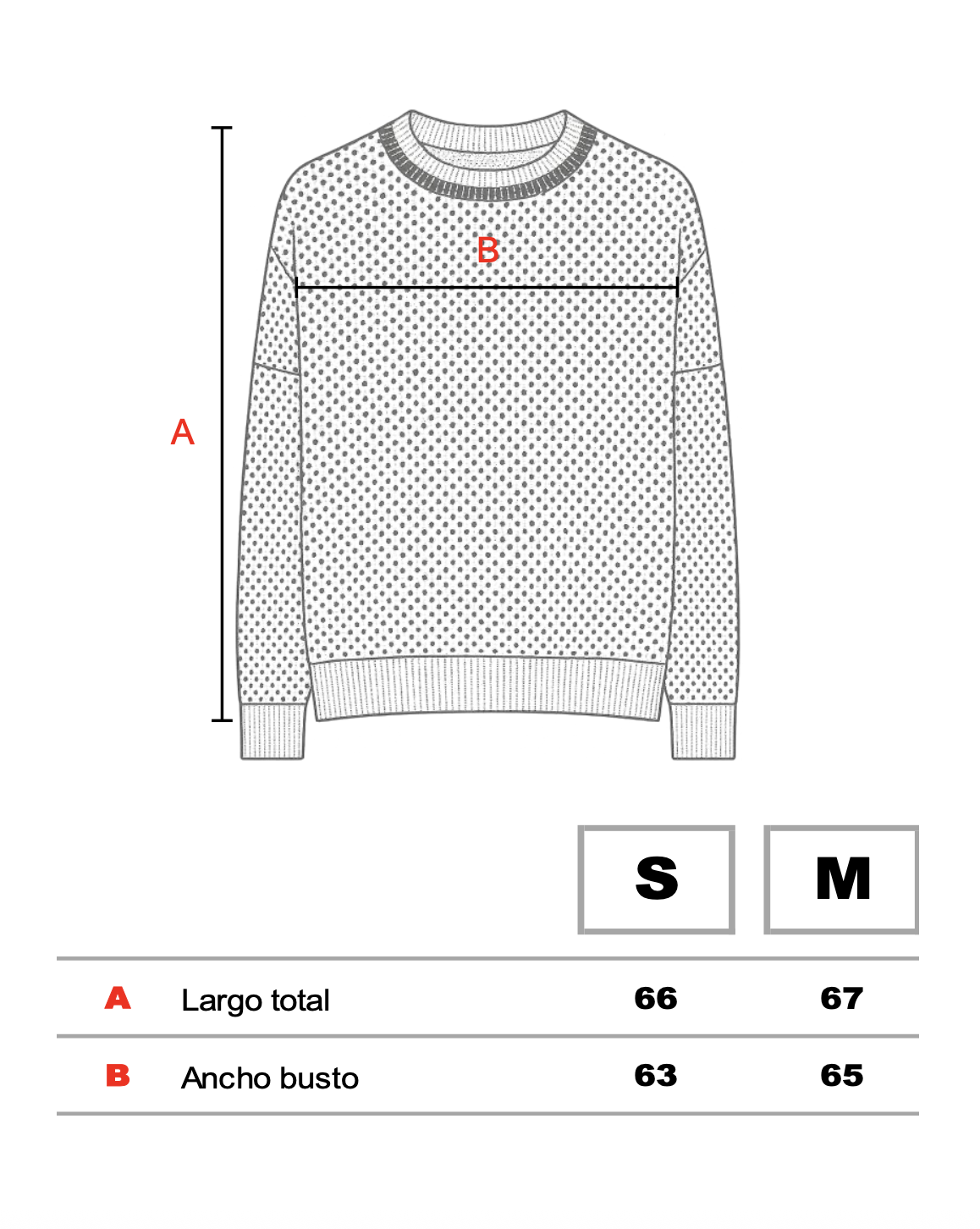 Un sweater oversize y liviano, con detalles especiales en el cuello, bajo y puños que le dan un toque único.